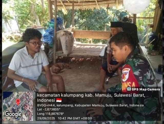 MAMUJU, BKM – Babinsa Koramil 1418-05/Kalumpang, melaksanakan kegiatan pembinaan wilayah yang dilanjutkan dengan komunikasi sosial (Komsos) bersama masyarakat di Desa Kondobulo, Kecamatan Kalumpang, Kabupaten Mamuju. Senin (29/9/2025).