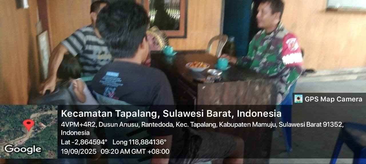 MAMUJU, BKM – Babinsa Koramil 1418-02/Tapalang, Serka Ilham, melaksanakan kegiatan Pengumpulan Data Teritorial (Puldata) di wilayah Kecamatan Tapalang, Kabupaten Mamuju, kegiatan ini dilakukan untuk memperbarui data kewilayahan sekaligus mempererat komunikasi sosial dengan masyarakat setempat. Jumat (19/9/2025).