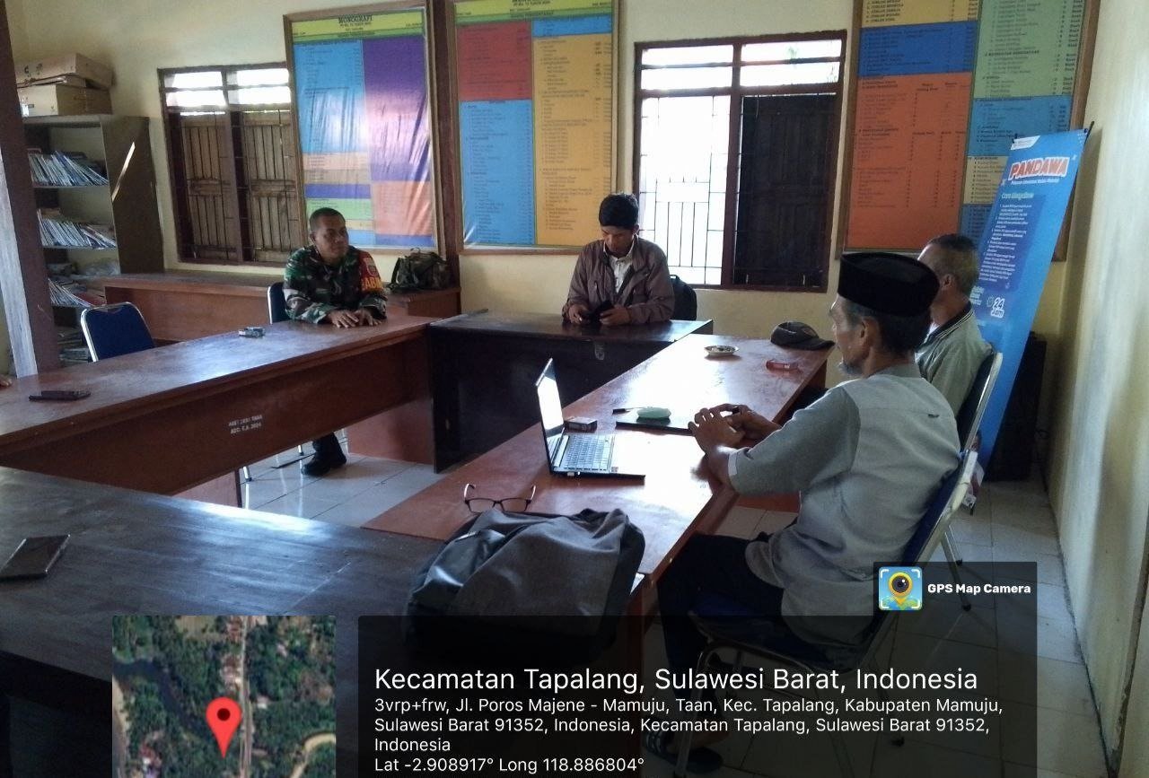 MAMUJU, BKM — Babinsa Koramil 1418-02/Tapalang, Serma Israk, melaksanakan kegiatan Pengumpulan Data Teritorial (Puldata) di wilayah Kecamatan Tapalang, Kabupaten Mamuju. Selain menjalankan tugas pengumpulan informasi terkait kondisi wilayah, Babinsa juga memanfaatkan kesempatan tersebut untuk mengimbau masyarakat agar senantiasa menjaga kebersihan lingkungan. Selasa (12/8/2025).