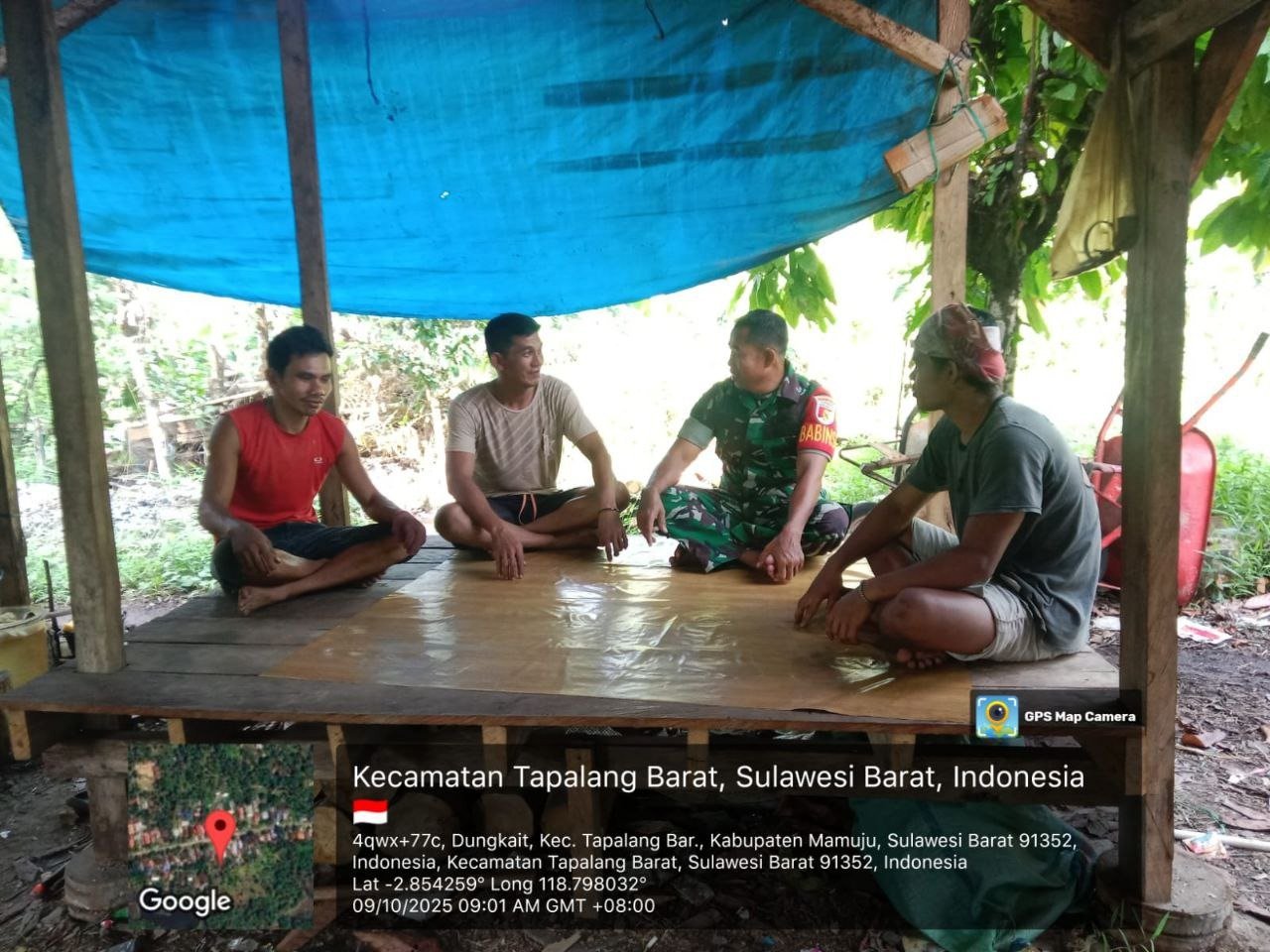 MAMUJU, BKM – Babinsa Koramil 1418-02/Tapalang, Serka Jusri, melaksanakan kegiatan Pengumpulan Data Teritorial (Puldata) di wilayah Kecamatan Balak-Balakang, Kabupaten Mamuju. Kegiatan ini dilakukan sebagai bagian dari tugas pokok Babinsa dalam memantau perkembangan situasi di wilayah binaan. Kamis (9/10/2025).