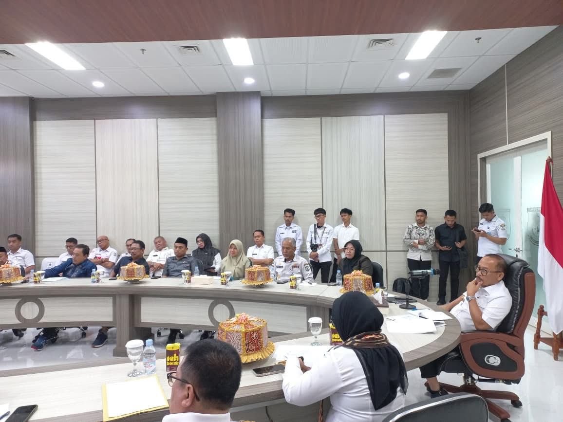Kepala Bapperida Sulbar, Junda Maulana, mendampingi Gubernur Suhardi Duka dalam Rapat Koordinasi (Rakor) bersama para Bupati se-Sulawesi Barat, yang digelar di Ruang Oval lantai 3 Kantor Gubernur Sulbar, Rabu, 15 Oktober 2025.