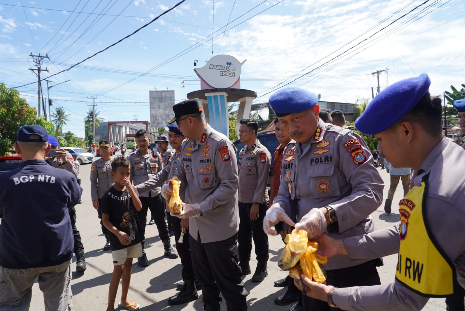 MAMUJU, BKM — Dalam program Inspiratif DitPolairud Polda Sulbar yaitu berbagi ikan segar kepada masyarakat di bulan suci Ramadhan, Kapolda Sulbar Irjen Pol Adang Ginanjar didampingi langsung DirPolairud Deny Pudjianto nampak begitu antusias membagikan ikan segar kepada masyarakat yang melintas di simpang lima kali Mamuju, Jumat (14/3/25).