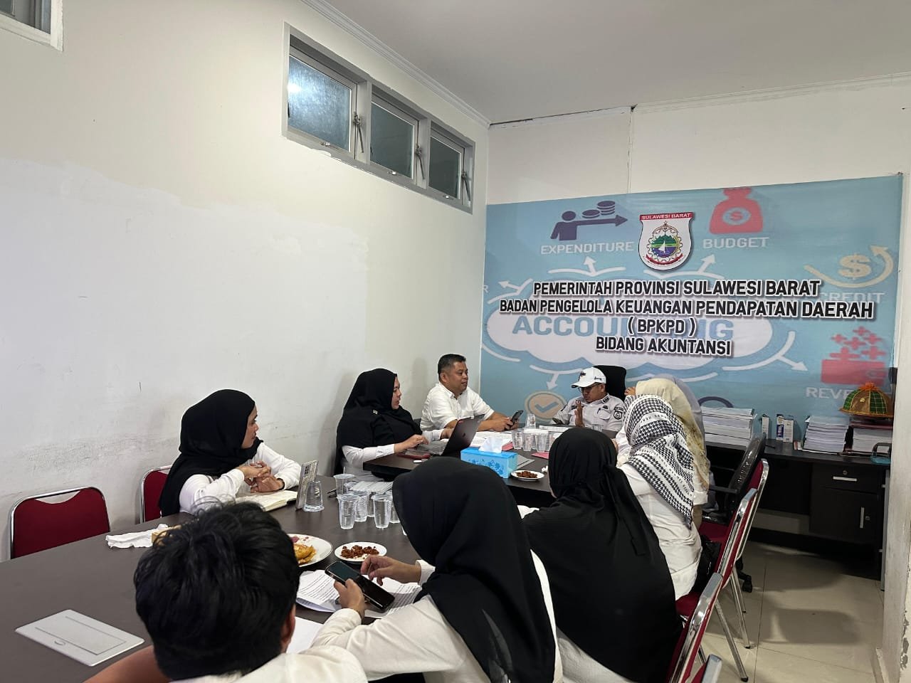 Rapat dipimpin langsung oleh Kepala Bidang Akuntansi dan Pelaporan Keuangan, Muhammad, didampingi Kasubid Akuntansi Keuangan dan Tuntutan Ganti Rugi, Indah Mustika Sari, serta Kasubid Akuntansi Barang Milik Daerah (BMD), Sri Rezki Gani, bersama seluruh staf Bidang Akuntansi dan Pelaporan Keuangan.