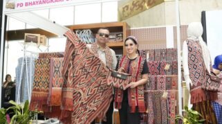 Tenun Kalumpang Pikat Hati di Bazar Nusantara 2025, Bhayangkari Sulbar Curi Perhatian