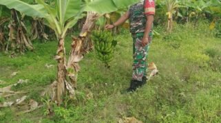 Koramil 1418-03/Kalukku Rawat Lahan Ketahanan Pangan Pisang Cavendis dan Pepaya di Beru-Beru