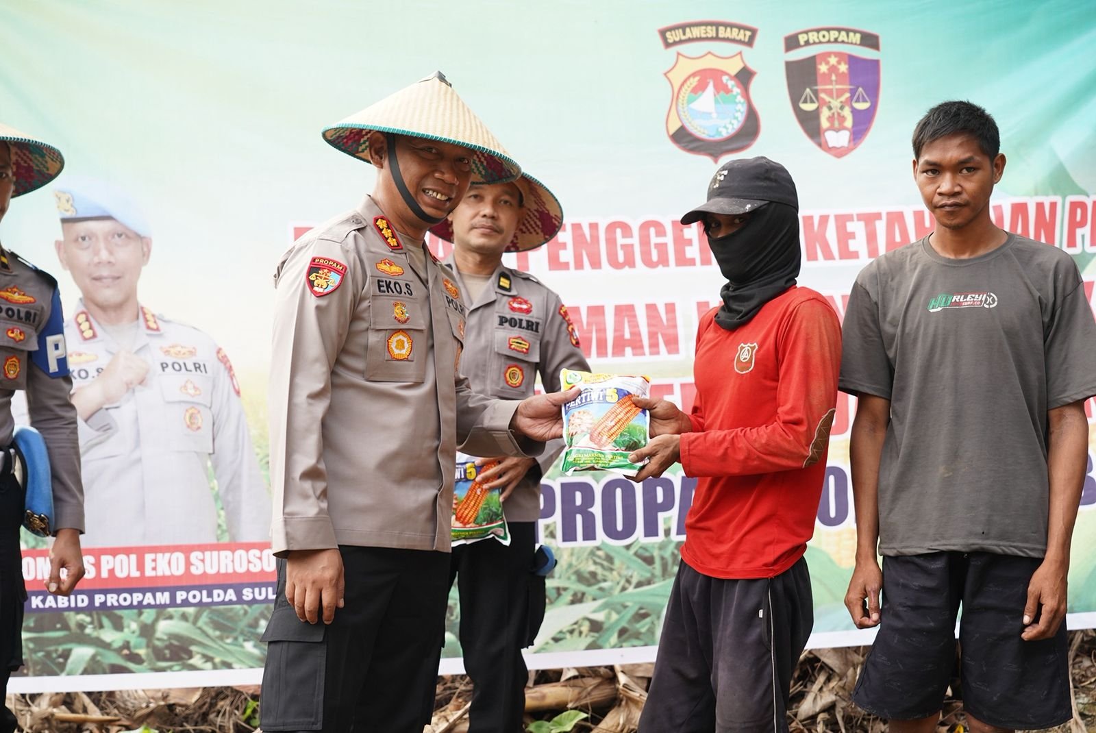 Suasana penuh semangat terlihat saat Kombes Pol Eko Suroso beserta stafnya dan warga bahu-membahu mencangkul dan menanam bibit jagung unggul. Tak hanya menebar ribuan bibit jagung unggul, Bid Propam Polda Sulbar juga menyerahkan bibit jagung kepada petani setempat sebagai bentuk dukungan nyata bagi peningkatan produktivitas pertanian di Sulbar.