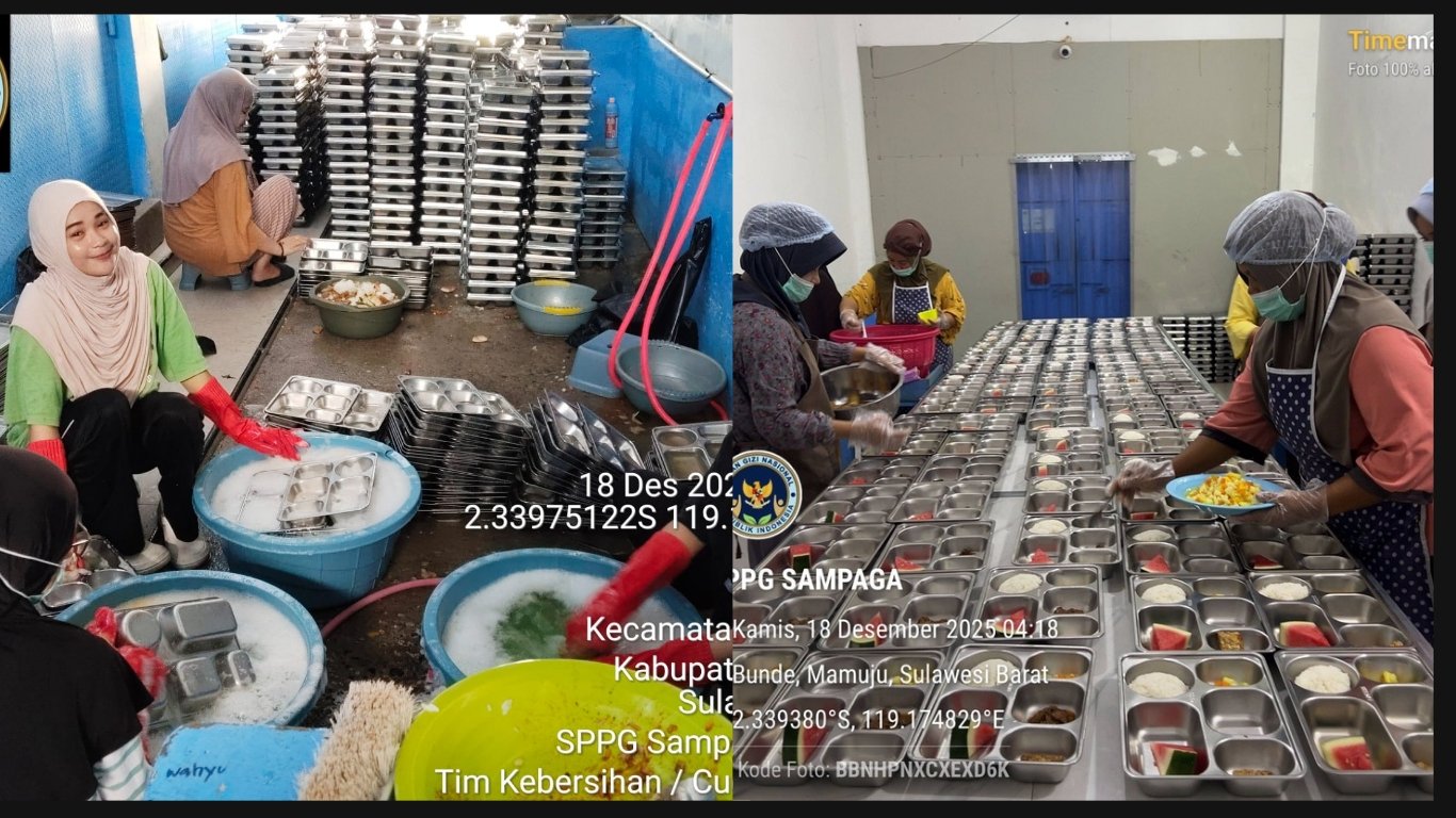 MAMUJU, BKM – Pagi belum sepenuhnya benderang, namun riuh rendah aktivitas sudah mulai terasa di Satuan Pelayanan Gizi (SPPG) Bunde. Di sinilah denyut nadi pelayanan gizi dimulai, melibatkan puluhan relawan yang mendedikasikan waktu dan tenaganya demi memastikan asupan sehat sampai ke tangan yang membutuhkan.
