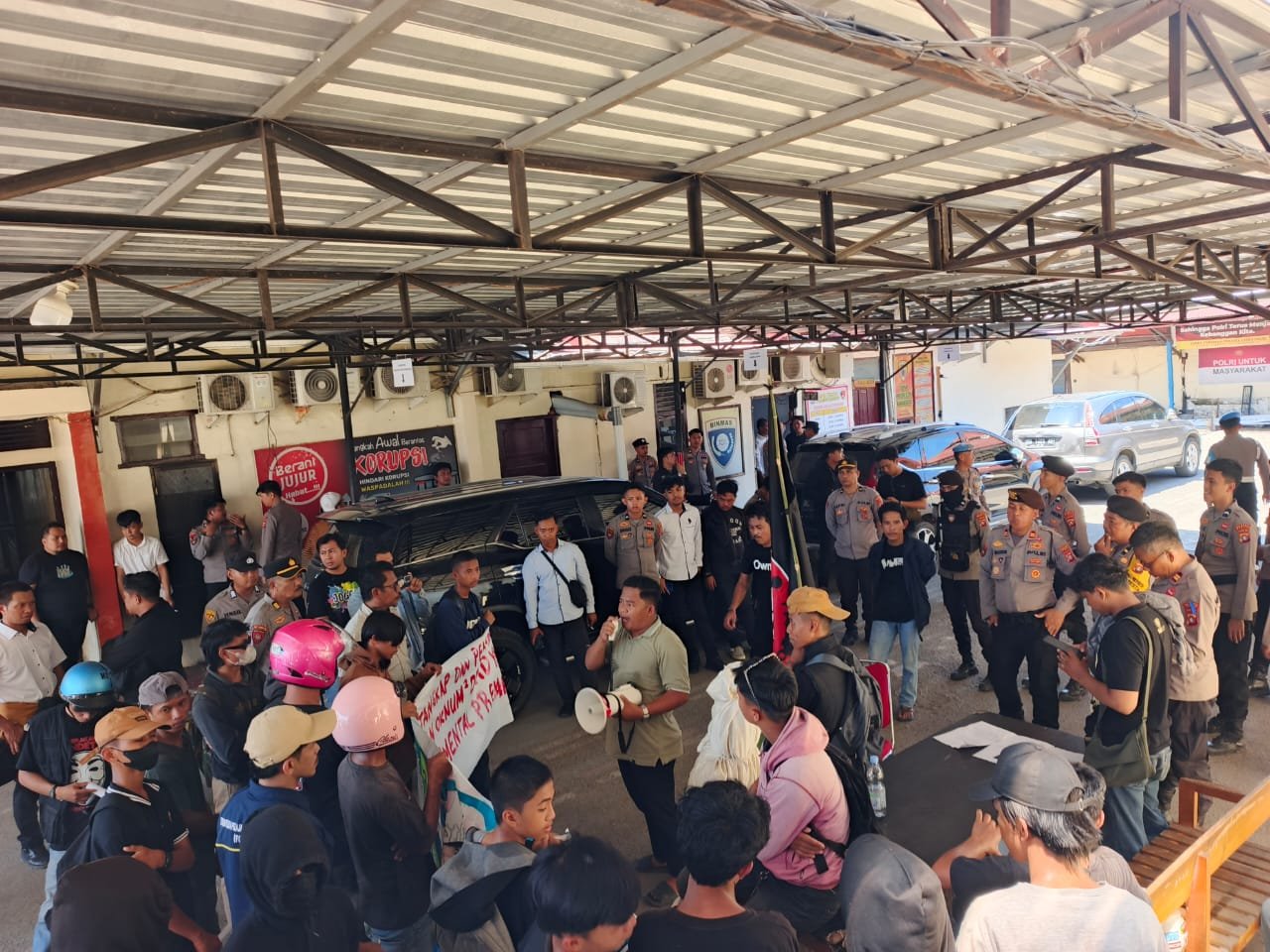 “Ada yang janggal dalam proses hukum ini. Terbukti, Kapolres tidak berada di tempat saat kami membawa aspirasi. Seharusnya beliau sigap, tanggap, dan berada di kantor mendengar langsung suara rakyat.”