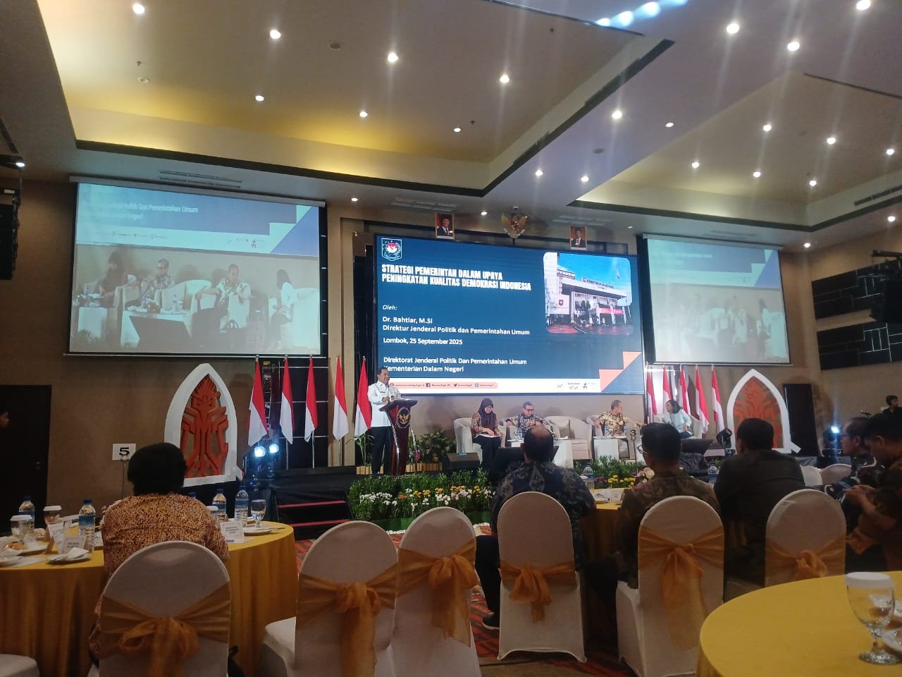 Acara tersebut dihadiri oleh sejumlah pejabat pusat dan daerah, termasuk Direktur Jenderal Politik dan Pemerintahan Umum Kementerian Dalam Negeri, Dr. Drs. Bahtia, M.Si, serta perwakilan pemerintah provinsi dan kabupaten/kota dari seluruh Indonesia.
