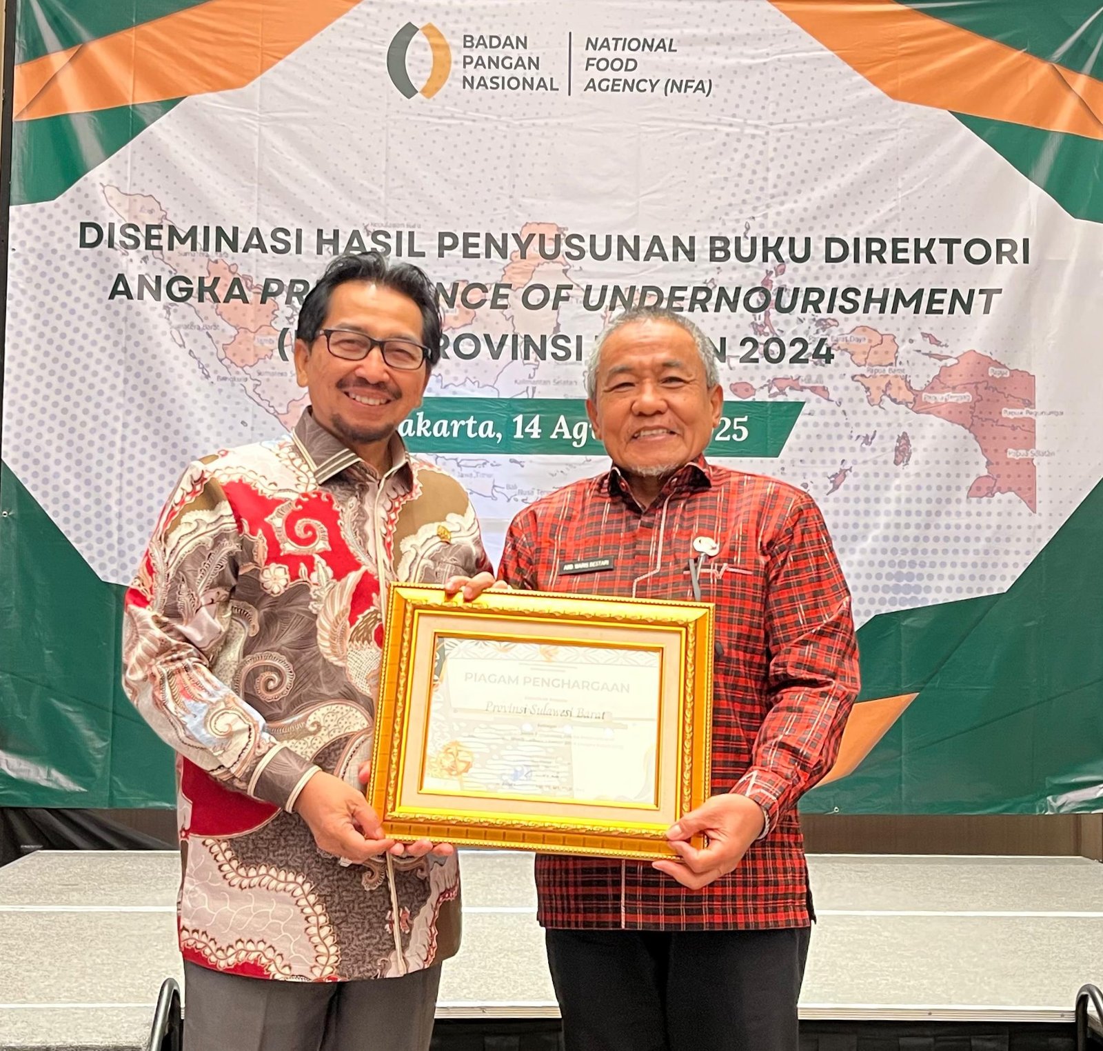 Piagam penghargaan yang diterima Kepala Dinas Ketahanan Pangan Sulbar, Ir.Abdul Waris Bestari, di Hotel RA Suites Simatupang, Jakarta, Kamis, 14 Agustus 2025, hari ini, merupakan penghargaan ke 16 selama tiga tahun Abdul Waris menjabat Kepala Dinas Ketahanan Pangan di Sulbar.