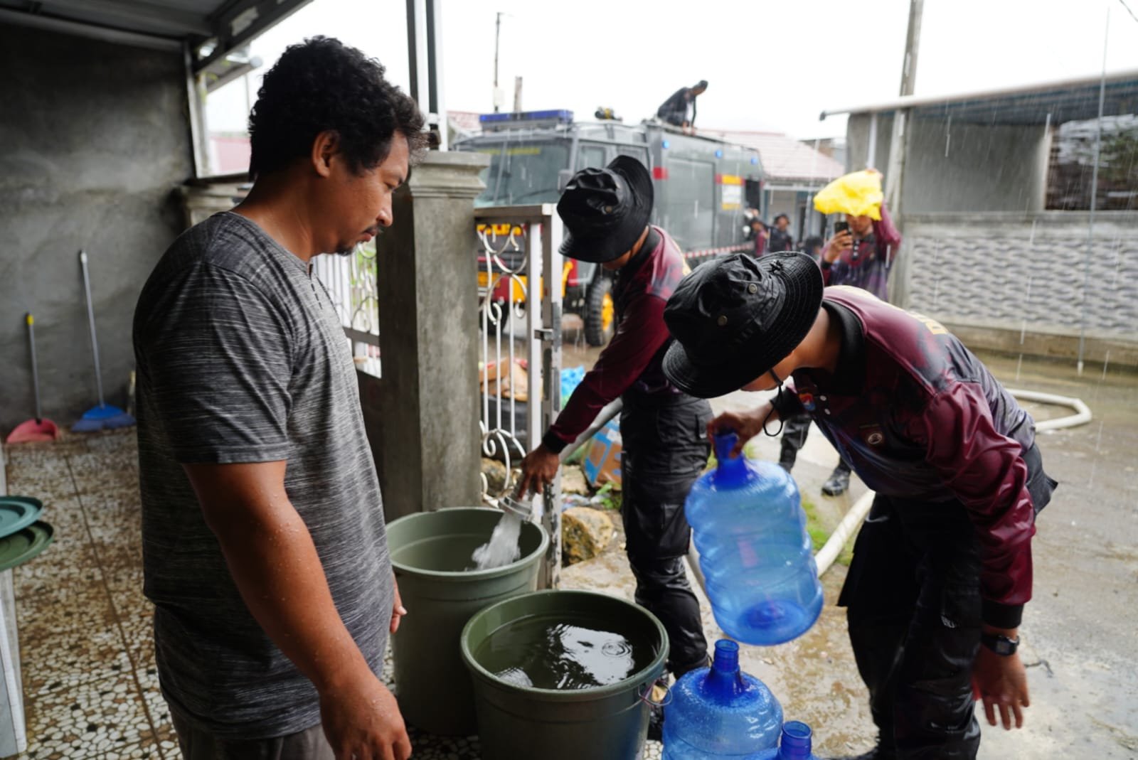 Banjir yang terjadi akibat hujan deras selama beberapa hari terakhir telah menyebabkan genangan air di sejumlah wilayah, sehingga banyak sumur warga tercemar dan pasokan air bersih terhenti. Menanggapi hal ini, Polda Sulbar menerjunkan personelnya beserta kendaraan tangki air ke lokasi-lokasi terdampak, seperti Perumahan Puri Mutiara 3 Mamuju dan Perumahan Timbu Mamuju.