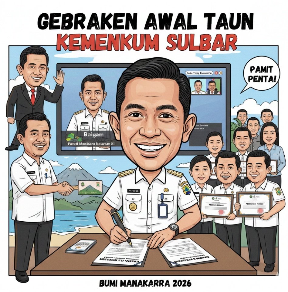 MAMUJU , BKM (12/1/2026) – Kantor Wilayah Kementerian Hukum (Kanwil Kemenkum) Sulawesi Barat mencatatkan agenda padat penuh produktivitas pada awal tahun 2026. Di bawah kepemimpinan Kakanwil Saefur Rochim, jajaran Kemenkum Sulbar melaksanakan serangkaian kegiatan strategis mulai dari penguatan internal hingga sinergi tingkat tinggi dengan Pemerintah Provinsi Sulawesi Barat.