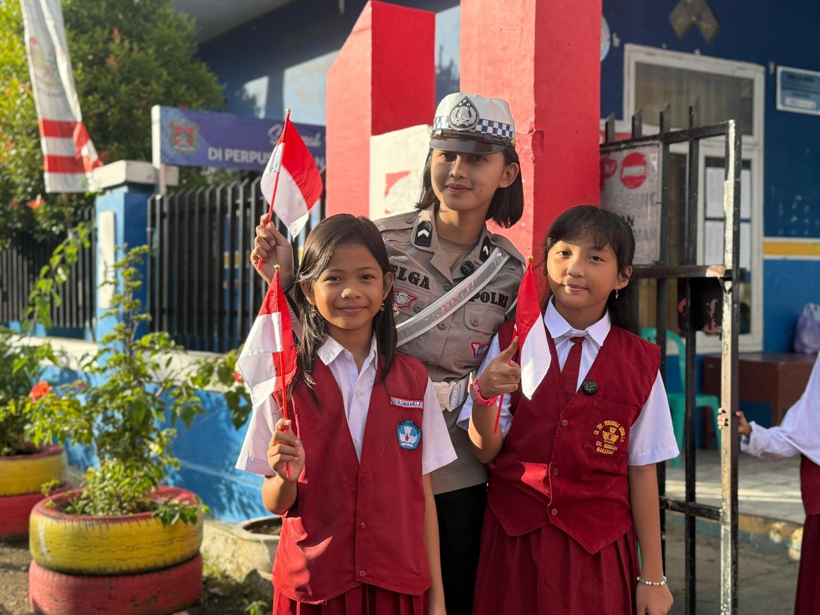 Petugas Ditlantas Polda Sulbar terlihat aktif membagikan bendera merah putih mini kepada para pengendara yang melintas. Aksi ini bukan sekadar pembagian bendera biasa, melainkan upaya kreatif untuk mengobarkan semangat kemerdekaan di tengah masyarakat.