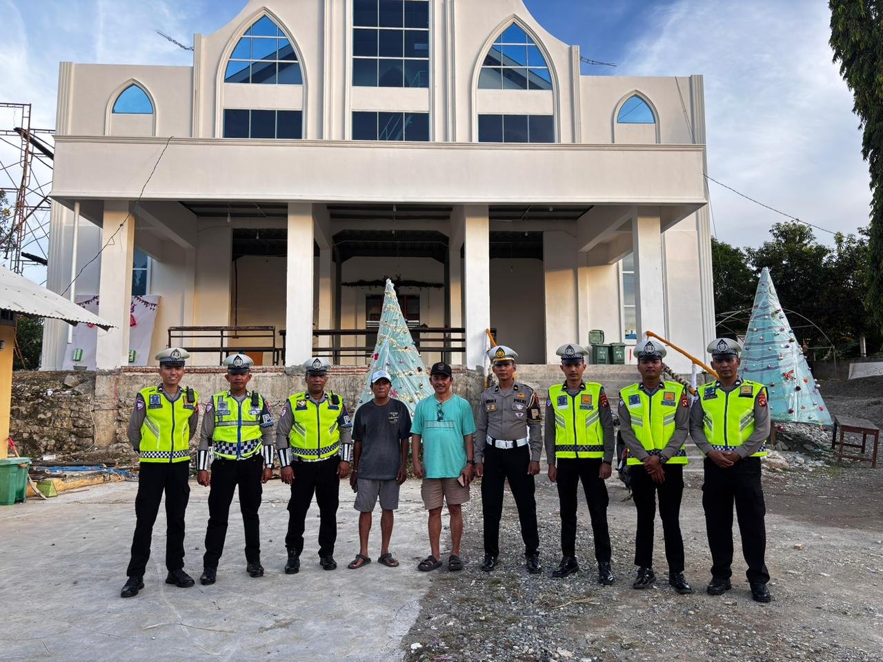 Nampak personel Ditlantas dalam Tim Urai Macet mengunjungi gereja-gereja yang akan menggelar rangkaian ibadah dan perayaan Natal. Patroli ini bertujuan memastikan situasi kamtibmas tetap kondusif sekaligus mengantisipasi potensi kemacetan lalu lintas di sekitar lokasi ibadah.