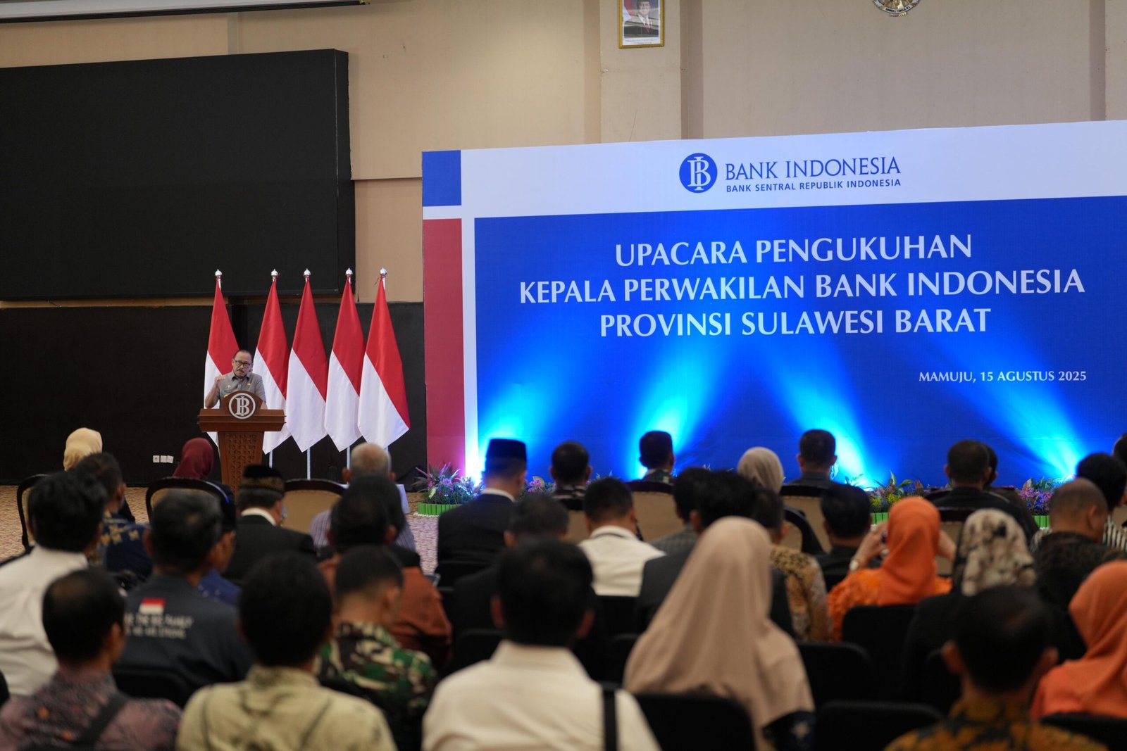 MAMUJU, BKM — Gubernur Sulbar, Suhardi Duka (SDK) menghadiri upacara Pengukuhan Kepala Perwakilan Bank Indonesia (BI) Provinsi Sulbar, di Ballroom Grand Maleo Hotel Mamuju, Jumat 15 Agustus 2025.
