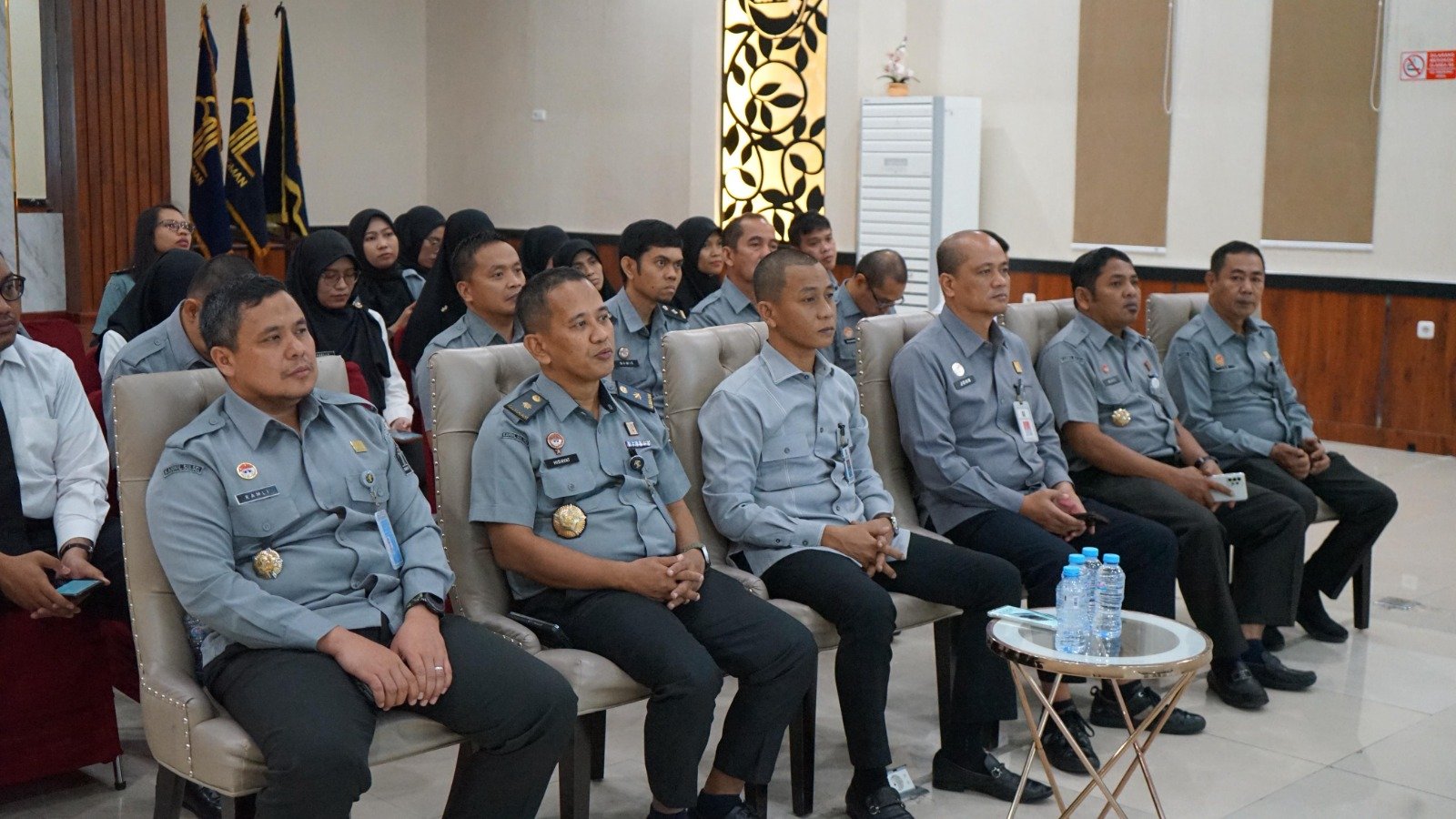 MAMUJU, BKM – Kakanwil Kemenkum Sulbar, Sunu Tedy Maranto didampingi oleh Kadiv Yankum, Hidayat Yasin dan Kadiv P3H, John Batara Manikallo bersama jajaran menghadiri pelaksanaan Webinar Anti Korupsi secara virtual di Aula Pengayoman, Selasa (19/8/2025).