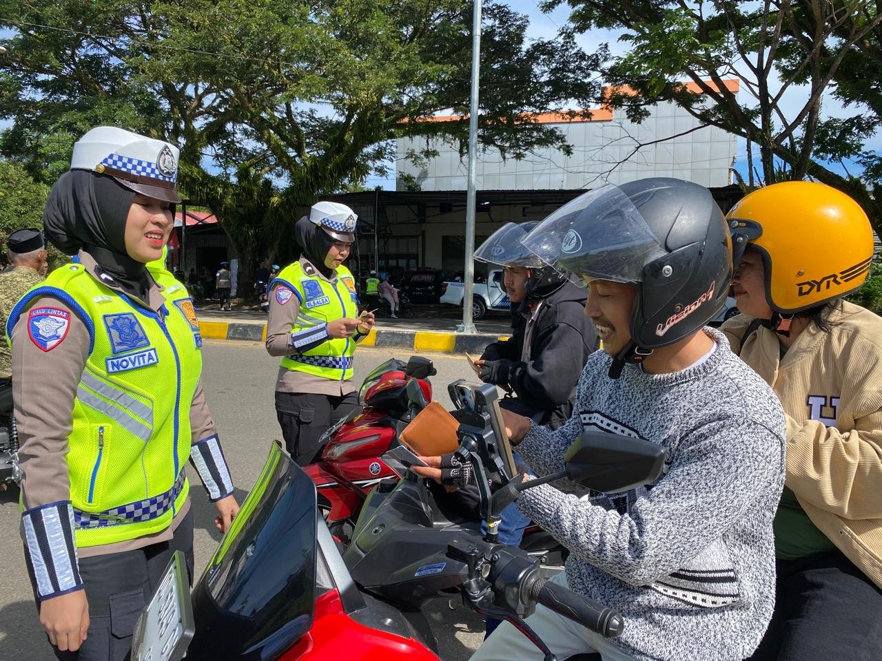 Sapaan ramah seperti “Mohon maaf mengganggu perjalanannya Bapak/Ibu, Kakak/Adik, kami sedang melaksanakan operasi keselamatan. Bolehkah kami melihat surat-surat kendaraan Anda?” menjadi pembuka komunikasi yang menjadikan interaksi lebih hangat dan akrab.