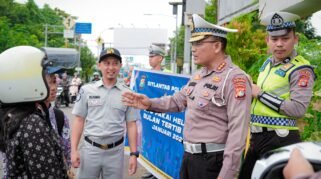 Aksi Simpatik di Mamuju: Jasa Raharja dan Dirlantas Polda Sulbar Turun Jalan Pasangkan Helm Pengendara