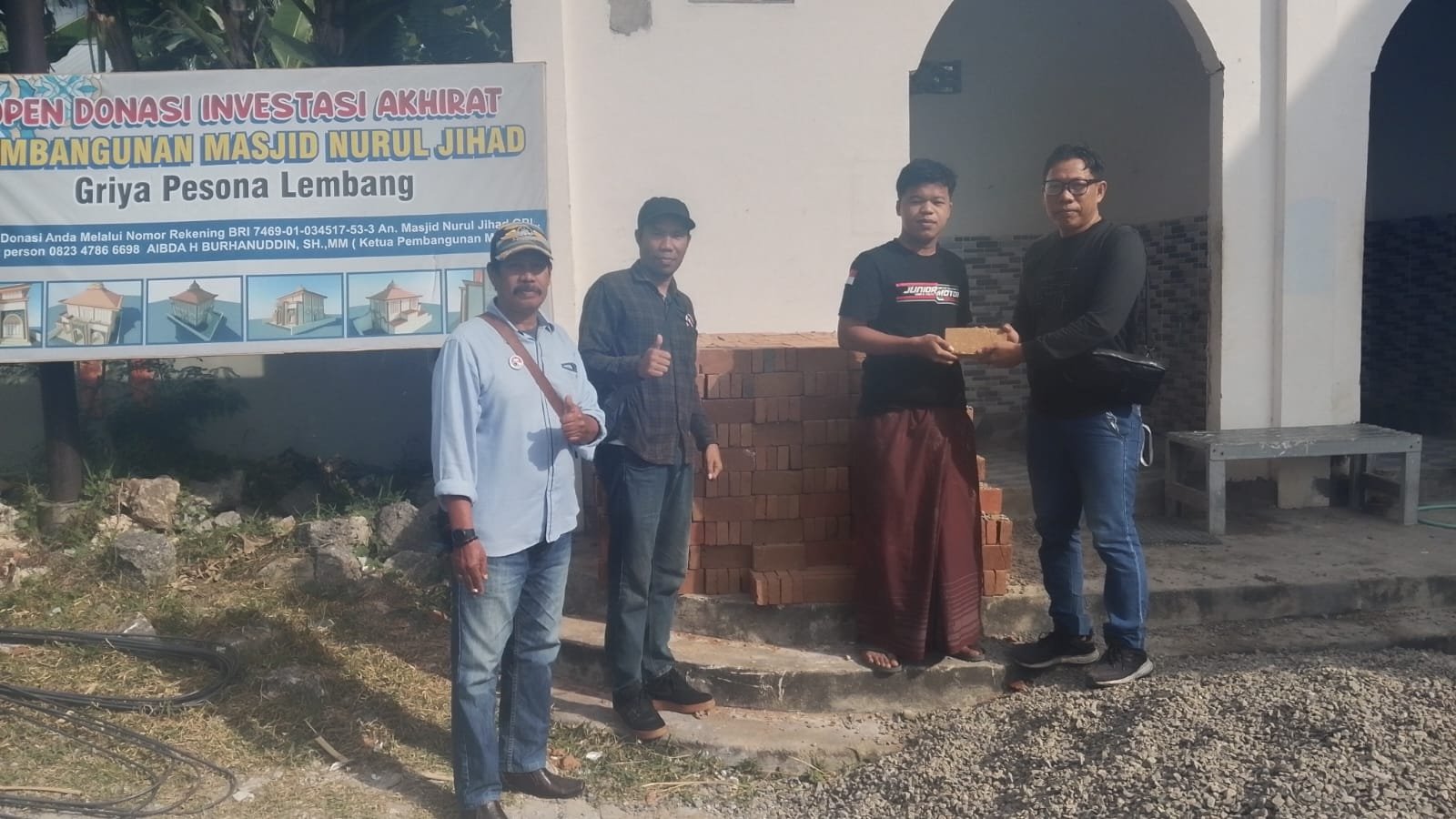 “Batu merah ini hanya sebagian kecil dari yang dibutuhkan. Namun, jika semua pihak ikut ambil bagian, insya Allah masjid ini akan segera berdiri megah,” tambahnya.