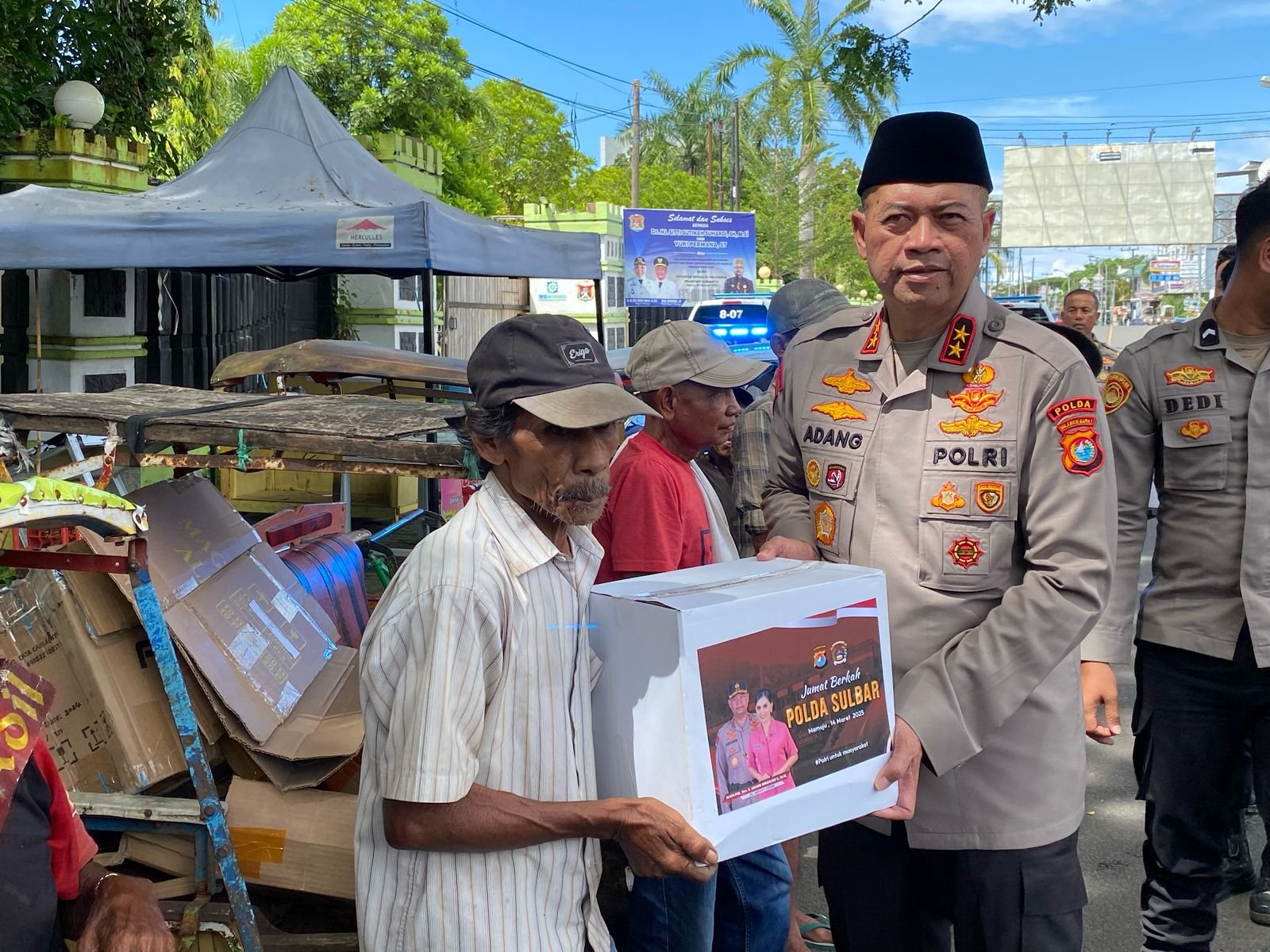 MAMUJU, BKM — Dalam semangat berbagi di bulan Ramadan, Kapolda Sulawesi Barat Irjen Pol. Adang Ginanjar bersama Ketua Bhayangkari, Ny. Miranti Adang menebar kebaikan dengan menyalurkan bantuan sembako kepada masyarakat kurang mampu yang ada di Mamuju, Jumat (13/3/25). Aksi “Jumat Berkah Ramadhan” ini merupakan jembatan empati yang menghubungkan kepolisian dengan masyarakat.