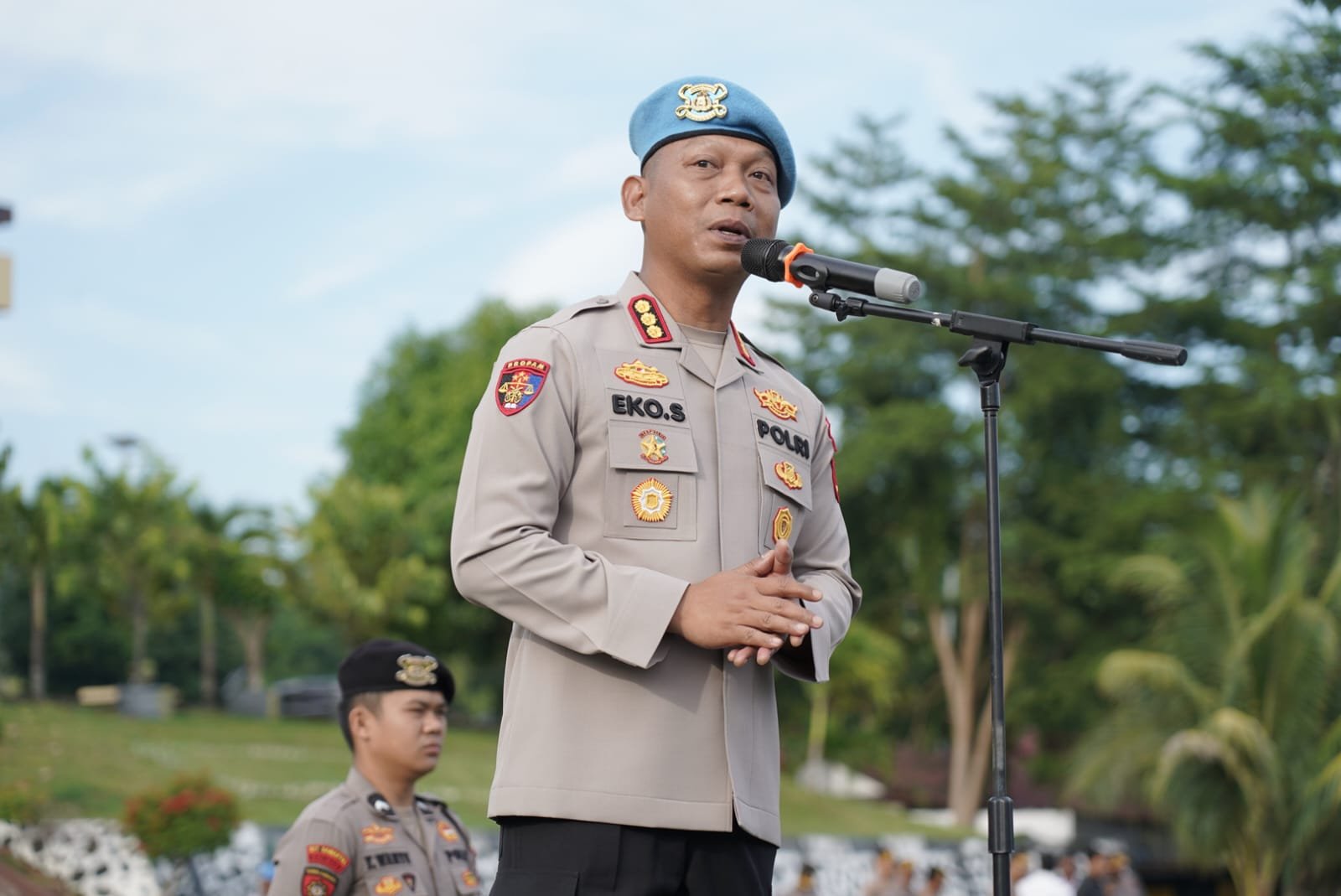 Dalam arahannya, Kombes Pol Eko Suroso mengingatkan agar seluruh personel menghindari gaya hidup hedonis dan tidak memamerkannya di media sosial.