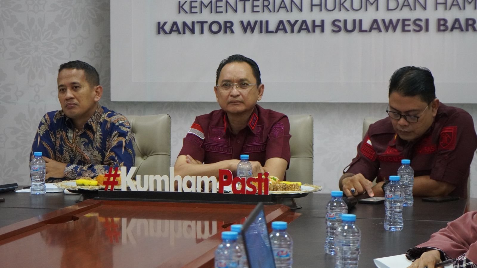 MAMUJU, BKM — Kepala Kantor Wilayah Kemenkumham Sulawesi Barat Pamuji Raharja beserta jajaran mengikuti arahan dari Sekretaris Jenderal pada kegiatan pengadaan CPNS 2024, Kamis (5/12/2024).
