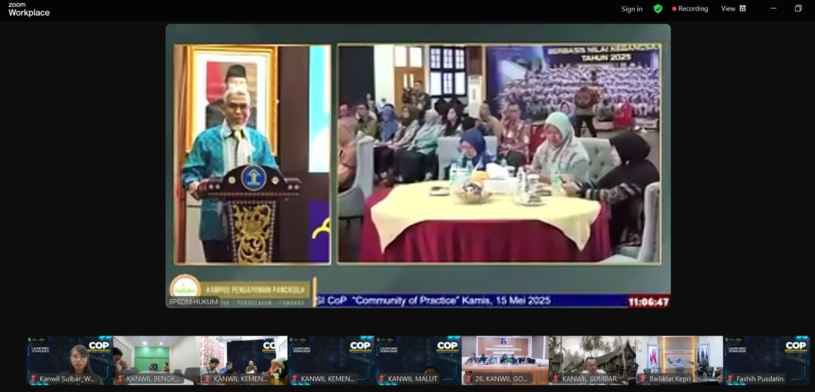 MAMUJU, BKM – Kantor Wilayah Kementerian Hukum Sulawesi Barat menghadiri secara virtual Soft Launching dan Sosialisasi Community of Practice (CoP) BPSDM Hukum yang diselenggarakan pada hari Kamis, 15 Mei 2025.