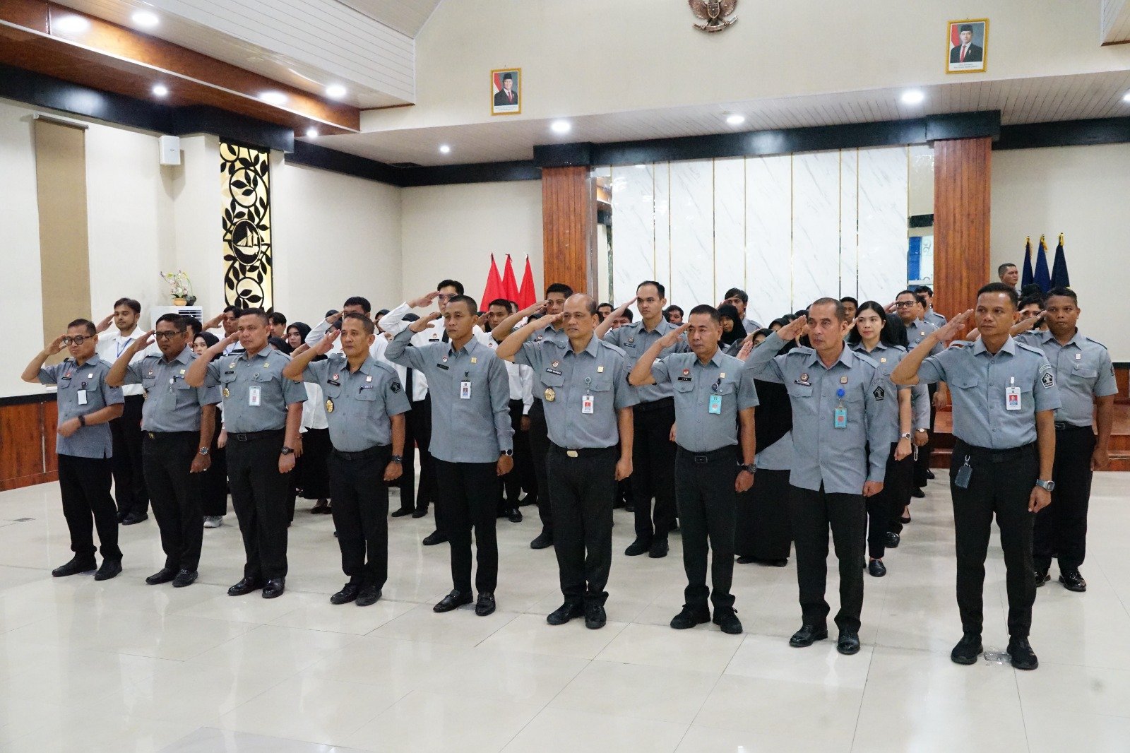 SULBAR, BKM – Kepala Kantor Wilayah Kementerian Hukum Sulawesi Barat, Sunu Tedy Maranto, bersama Kadiv Yankum, Hidayat Yasin, Kadiv P3H, John Batara Manikallo, serta seluruh jajaran mengikuti apel bersama jajaran Kementerian Hukum secara virtual di Aula Pengayoman.