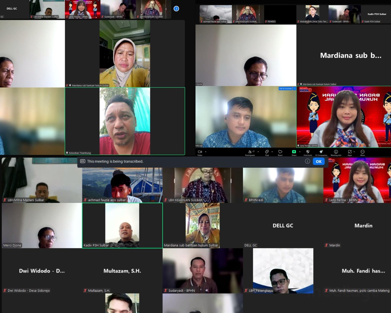 MAMUJU, BKM — Kantor Wilayah Kementerian Hukum Sulawesi Barat melaksanakan rapat koordinasi Monitoring dan Evaluasi pelaksanaan Aktualisasi Pelatihan Paralegal serentak serta Pembentukan Pos Bantuan Hukum secara virtual melalui platform Zoom pada hari Jumat, 25 April 2025.