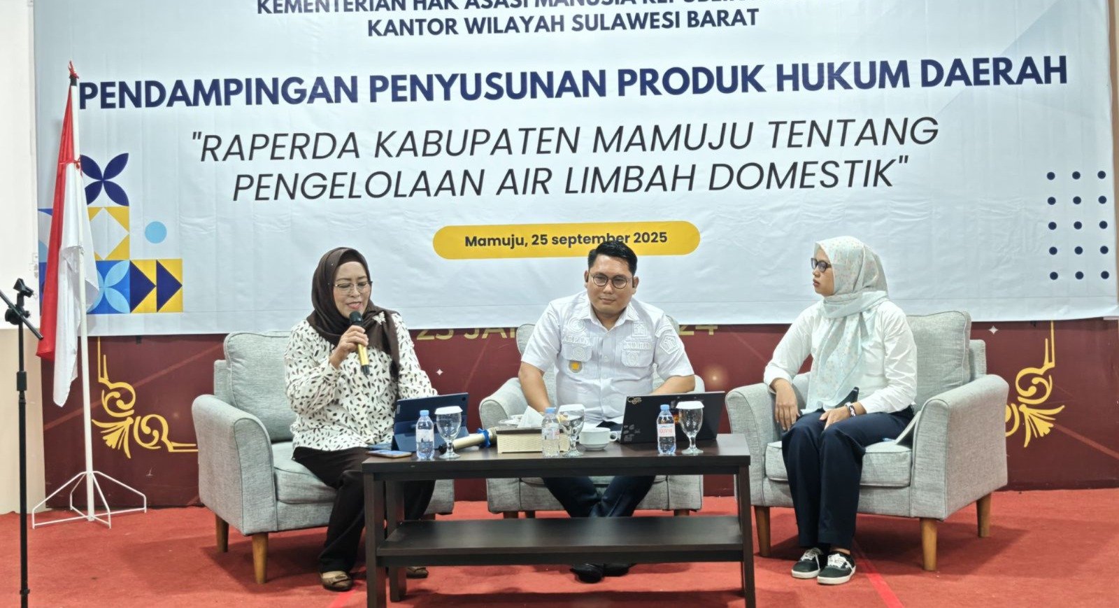 MAMUJU, BKM — Kanwil Kemenkum Sulbar melaksanakan pendampingan Penyusunan Rancangan Produk Hukum Daerah dari Perspektif HAM dengan objek Rancangan Peraturan Daerah Kabupaten Mamuju tentang Pengelolaan Air Limbah Domestik.