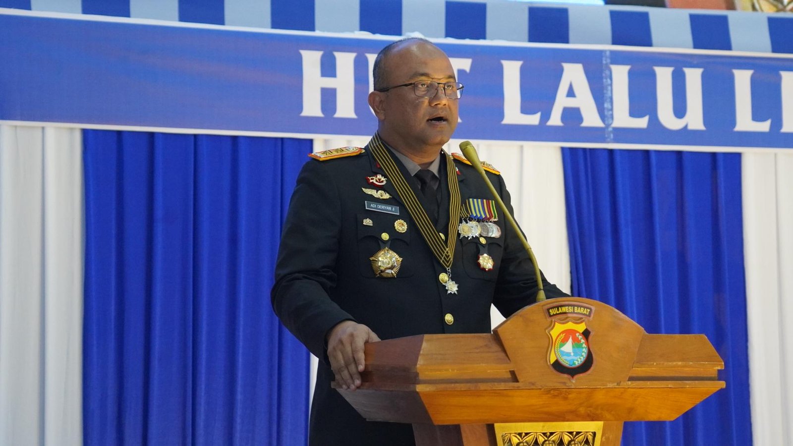 SULBAR, BKM – Kepala Kepolisian Daerah Sulawesi Barat (Kapolda Sulbar), Irjen Pol Adi Deriyan Jayamarta, memberikan apresiasi tinggi pada peringatan Hari Ulang Tahun (HUT) Lalu Lintas Bhayangkara ke-70 yang berlangsung di Aula Marannu Mapolda, Senin (22/9/25).