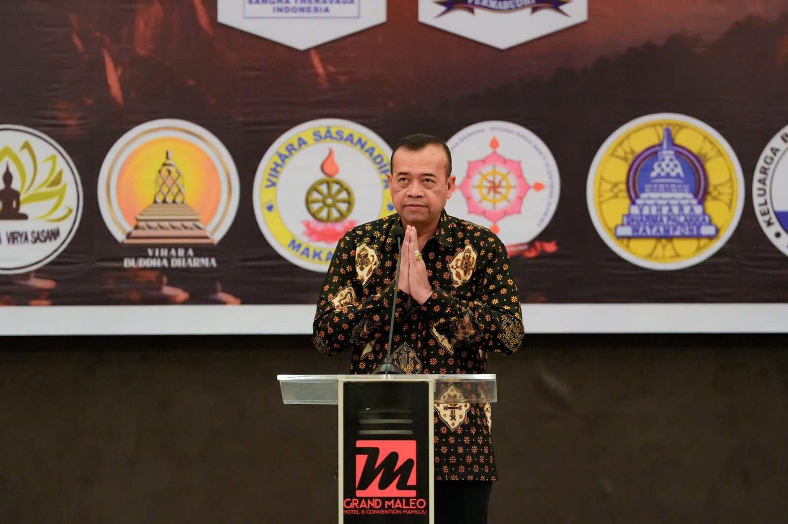 MAMUJU,BKM — Suasana khidmat dan damai menyelimuti perayaan Sannipata Waisak yang berlangsung di Ballroom Grand Maleo Hotel & Convention Mamuju, Sabtu (7/6/25).