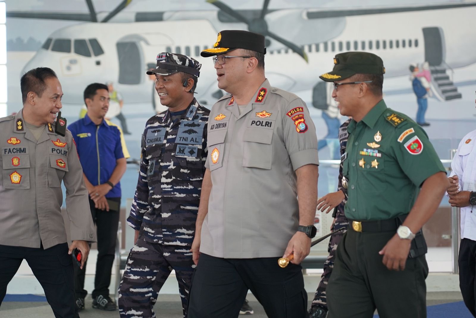 MAMUJU, BKM – Kapolda Sulawesi Barat, Irjen Pol Adi Deriyan Jayamarta, bersama jajaran Forum Koordinasi Pimpinan Daerah (Forkopimda) menyambut kedatangan Wakil Menteri Pariwisata Republik Indonesia (Wamenpar RI), Ni Luh Putu Elvina Puspasari, di Bandara Tampa Padang Mamuju, Selasa (26/8/25).