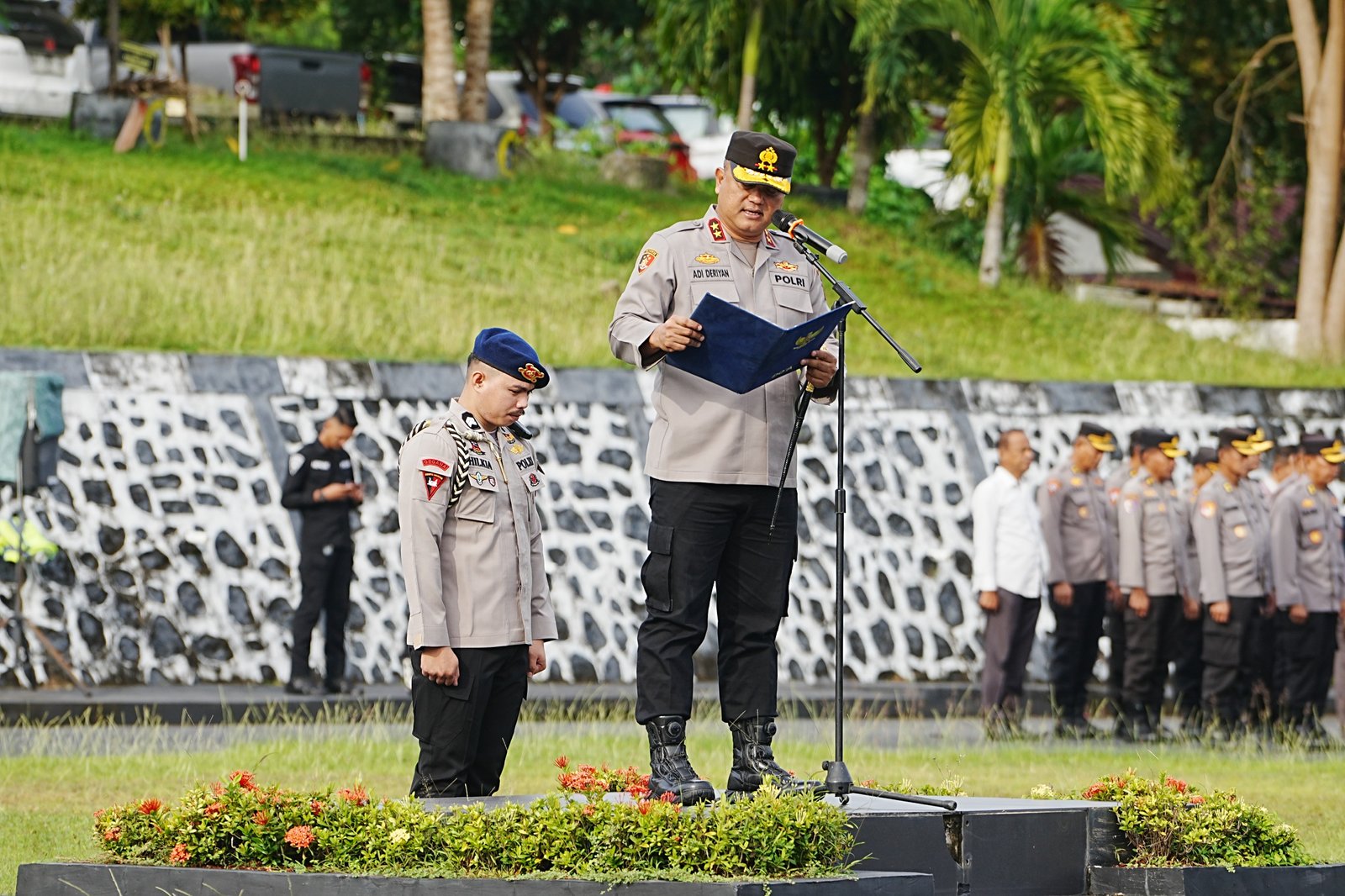 Kapolda juga mengingatkan untuk menghindari hal yang bertentangan dengan kebaikan: “Jangan melakukan kesalahan apapun, tidak bermain dengan manipulasi atau ‘judol’ dalam bentuk apapun dan fokus pada pelayanan yang baik.”
