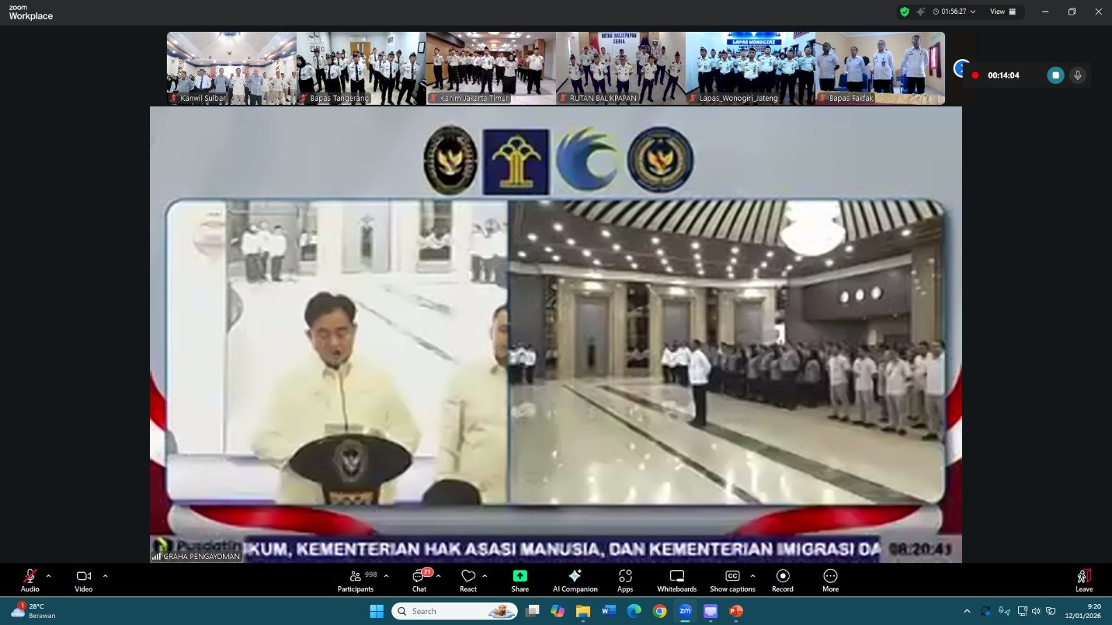SULBAR , BKM – Mengawali tahun 2026, Kepala Kantor Wilayah Kementerian Hukum Sulawesi Barat, Saefur Rochim, bersama jajaran Pimpinan Tinggi (Pimti) mengikuti Apel Bersama Awal Tahun di lingkungan Kemenko Bidang Hukum, HAM, Imigrasi, dan Pemasyarakatan secara virtual, Senin (12/1/2026).