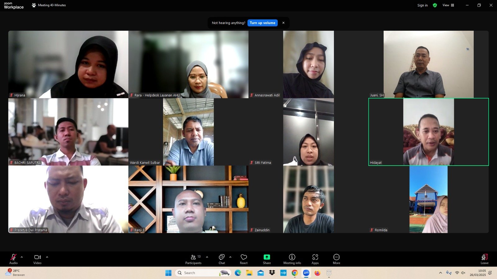 Kepala Divisi Pelayanan Hukum Kemenkum Sulbar, Hidayat, saat menggelar monitoring pelaksanaan tugas yang dilaksanakan secara virtual melalui Zoom menyebut bahwa monitoring ini bertujuan untuk memastikan bahwa pelayanan AHU tetap berjalan dengan baik dan optimal meskipun terdapat penyesuaian jam kerja.