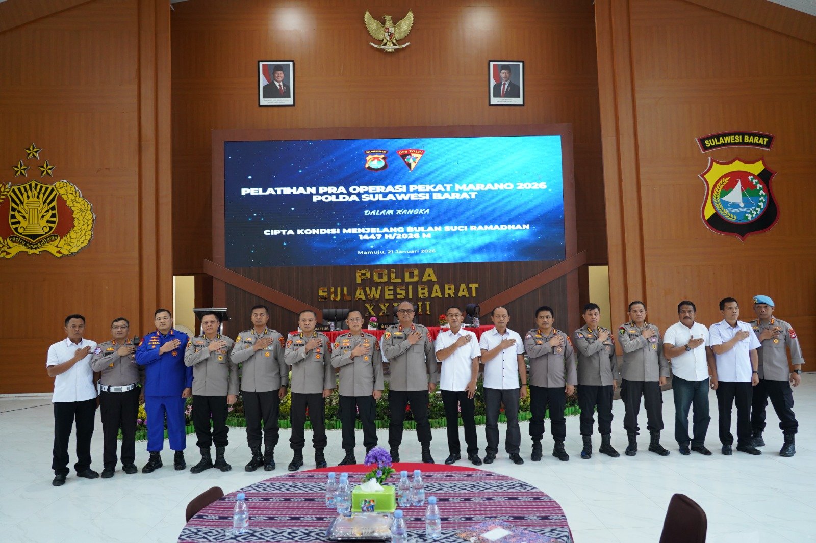 SULBAR, BKM — Guna memastikan pelaksanaan optimal Operasi Pekat Marano-2026, Polda Sulbar menggelar Pelatihan Pra Operasi (Latpra) yang melibatkan seluruh jajarannya, Rabu (21/1/26) di Aula Marannu Mapolda.