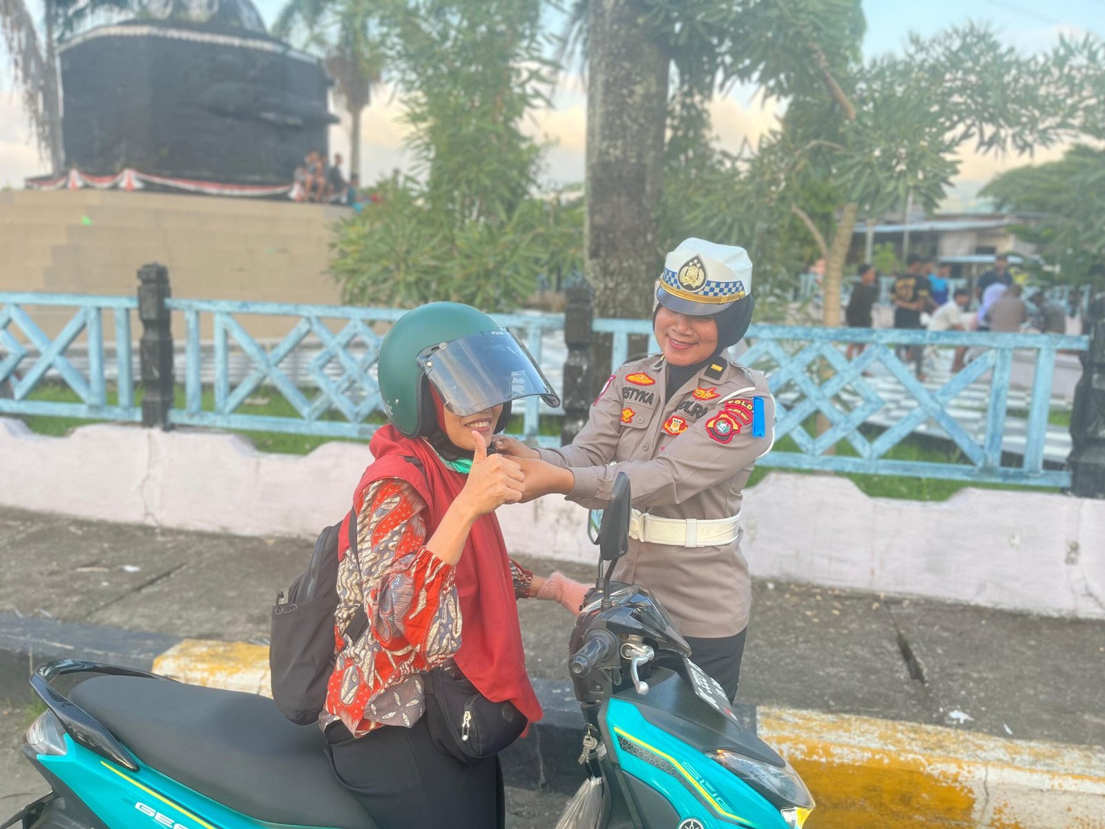 Terlihat petugas Ditlantas Polda Sulbar bertindak tegas namun tetap humanis dalam menindak para pelanggar lalu lintas, menjadi perpaduan yang efektif untuk membangun kesadaran berkendara.