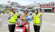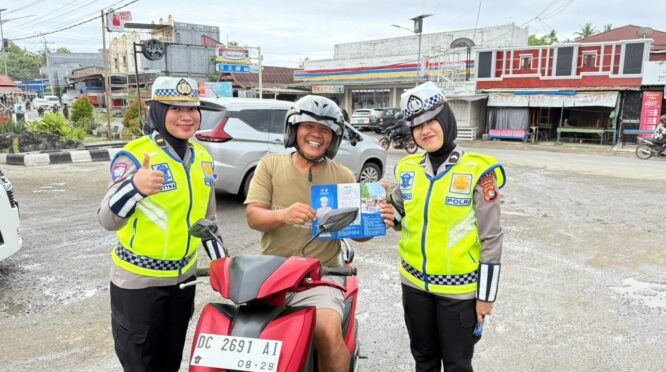 Ditlantas Polda Sulbar Bagikan Leaflet, Himbau Tertib Helm dan Keselamatan Lalu Lintas