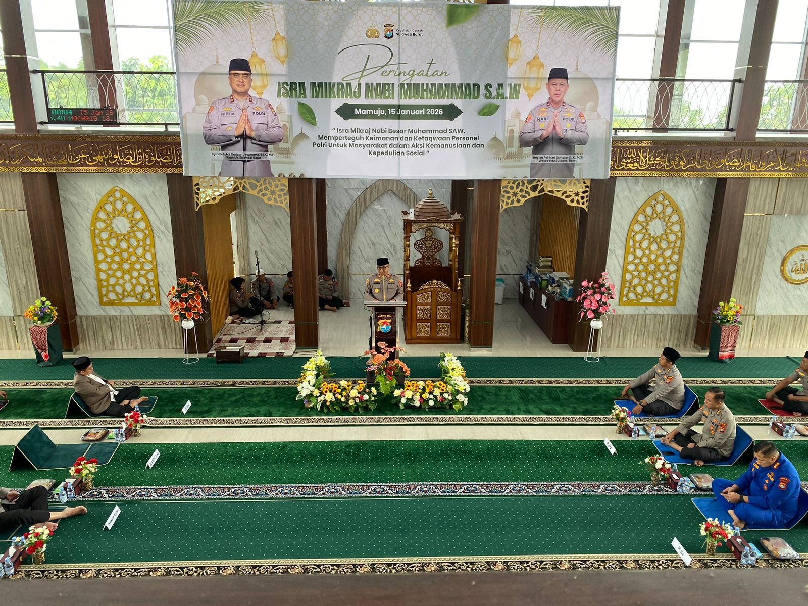 SULBAR, BKM — Peringatan Isra Mikraj Nabi Muhammad Shallallahu Alaihi wa Sallam juga meriahkan lingkungan Polda Sulbar. Di Masjid Jabal Rahmah, Kamis (15/1/26), Kapolda Sulbar Irjen Pol Adi Deriyan Jayamarta bersama pejabat utama, serta seluruh personel muslim dan muslimah mengikuti rangkaian kegiatan ibadah dengan khidmat.