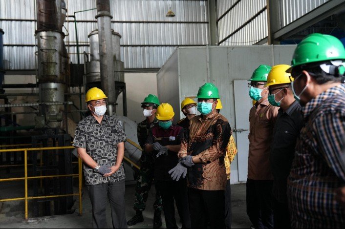Selanjutnya Pj Bahtiar dan rombongan mengunjungi pabrik limbah B3. Dimana rombongan melihat secara langsung proses pengolahan.