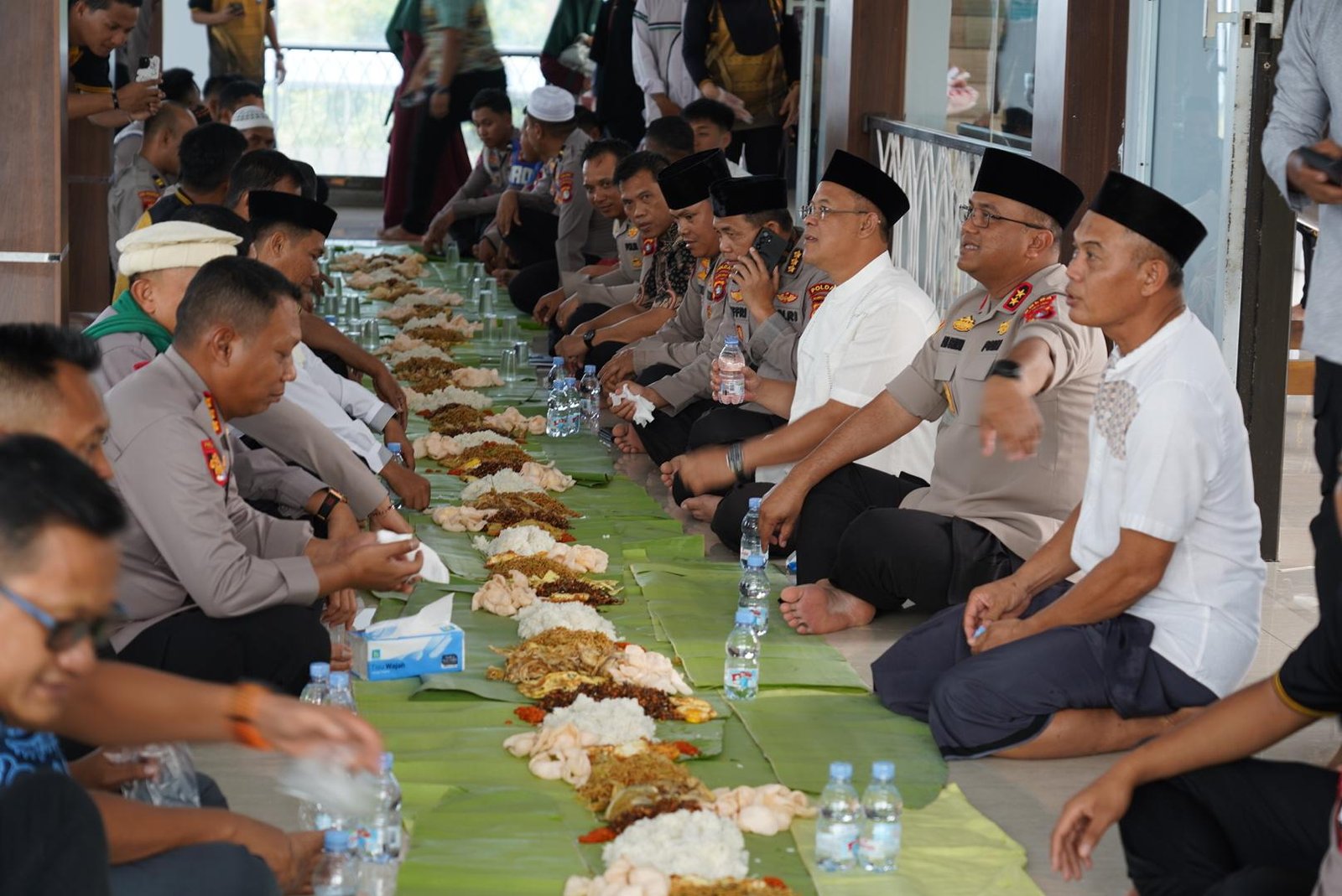 Acara kemudian dilanjutkan dengan kegiatan makan bersama yang melibatkan seluruh jamaah Jumat. Suasana keakraban terlihat jelas saat Kapolda Sulbar, Irjen Pol Adi Deriyan Jayamarta, bersama para perwira tinggi lainnya, berbaur dan menyantap hidangan yang telah disiapkan.