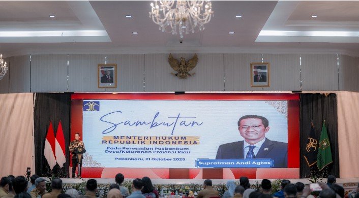RIAU, BKM — Menteri Hukum Supratman Andi Agtas, hari ini meresmikan 100 persen Pos Bantuan Hukum (Posbankum) di Seluruh Desa dan Kelurahan sebanyak 1.862, di Provinsi Riau. Posbankum adalah wadah bagi masyarakat desa/kelurahan untuk mendapatkan layanan informasi/konsultasi, bantuan hukum non litigasi lainnya/advokasi, penyelesaian sengketa/konflik melalui mediasi oleh Paralegal dan Kepala Desa/Lurah sebagai Juru Damai, dan layanan rujukan advokad baik probono maupun Organisasi Bantuan Hukum.