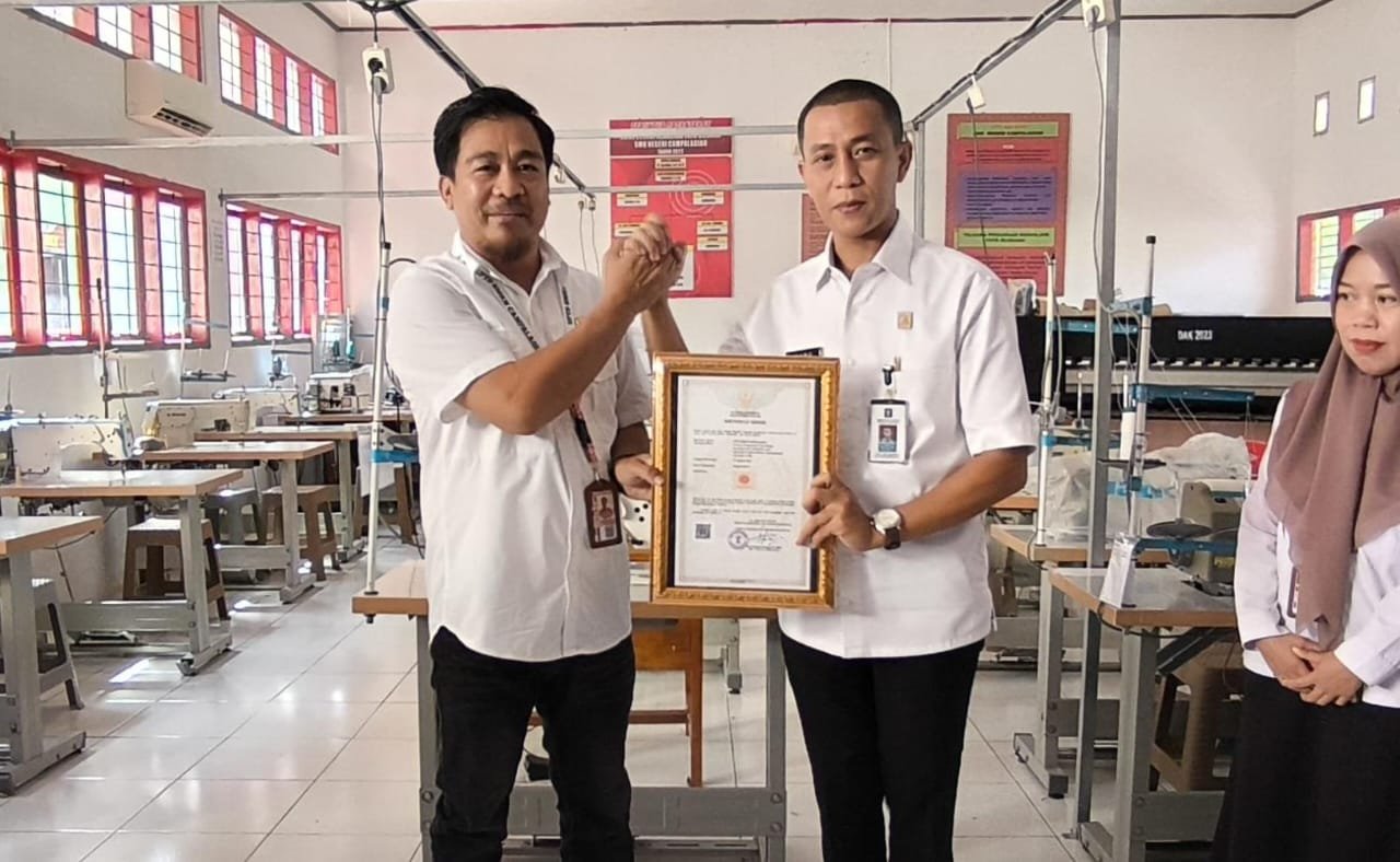POLMAN, BKM — Kantor Wilayah Kementerian Hukum Sulawesi Barat menyerahkan sertifikat merek kepada UPTD SMKN Campalagian (16/4/25)