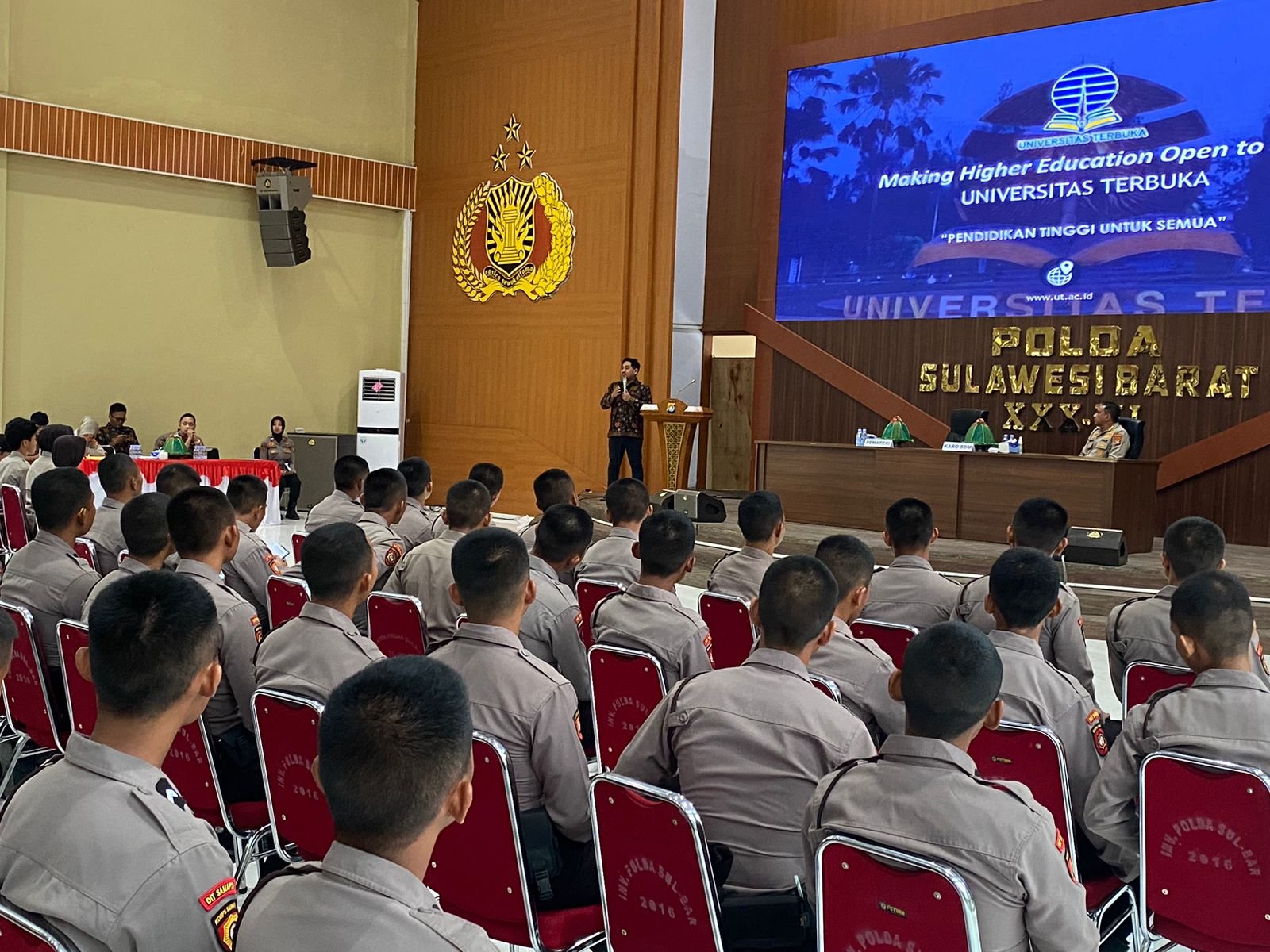 MAMUJU, BKM — Ratusan personel bintara remaja Polda Sulbar angkatan 51 dan 52 Polda Sulbar mengikuti sosialisasi dan promosi Program Pendidikan Universitas Terbuka yang terpusat di Kabupaten Majene, Kamis (23/1/25).