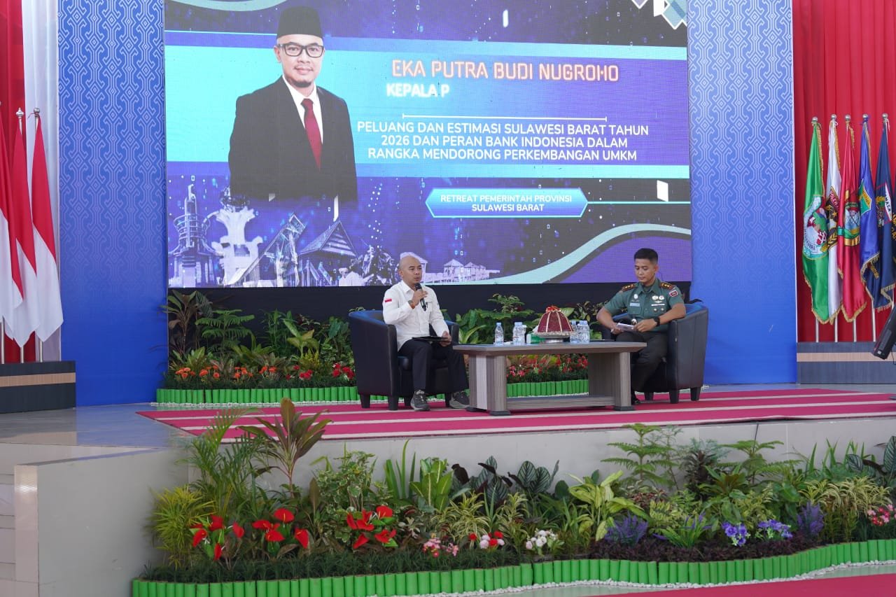 MAMUJU, BKM — Kepala Perwakilan Bank Indonesia (BI) Provinsi Sulawesi Barat (Sulbar), Eka Putra Budi Nugroho, menyampaikan pemaparan komprehensif terkait kondisi dan prospek perekonomian global, nasional, serta regional Sulbar dalam Retret Pemprov Sulbar, Sabtu, 19 Juli 2025.