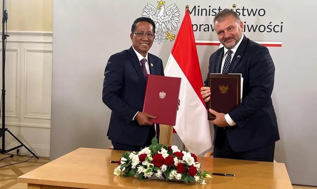 Perjanjian MLA ditandatangani Menteri Hukum Supratman Andi Agtas dan Menteri Kehakiman Polandia Waldemar Zurek, Jumat (19/9/2025), di Kementerian Kehakiman Polandia.
