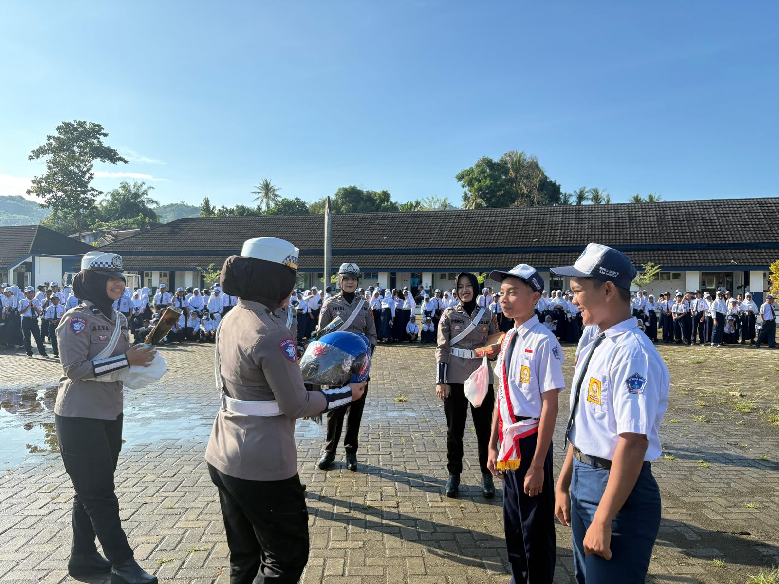 Dalam kegiatan tersebut, IPDA Restyka bersama timnya aktif memberikan sosialisasi mengenai pentingnya keselamatan berkendara. Dengan pendekatan yang interaktif dan mudah dipahami, para siswa diajak untuk menjadi pelopor keselamatan di jalan raya. Materi yang disampaikan mencakup berbagai aspek, mulai dari penggunaan helm yang benar, pentingnya mematuhi rambu lalu lintas, hingga etika berkendara yang baik.