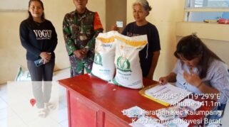 Kodim 1418/ Mamuju Dampingi Penyaluran Bantuan Beras Untuk Penerima Bantuan Pangan