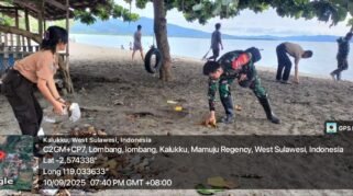 Cegah Pencemaran Laut, Babinsa Koramil 1418-03/Kalukku Gencarkan Aksi Bersih Pantai